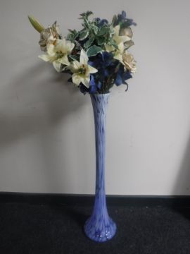 Two contemporary rugs together with a blue glass vase containing artificial flowers