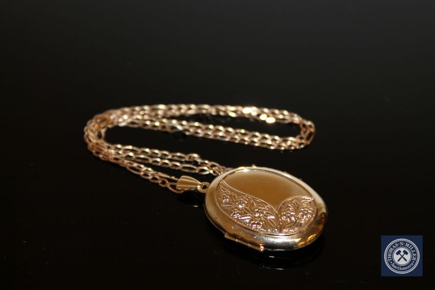 A 9ct gold locket suspended upon a 9ct gold chain.