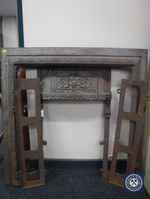 A cast iron fire inset, with two side panels.