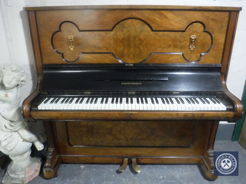 A walnut cased overstrung piano by Kiobenhavn