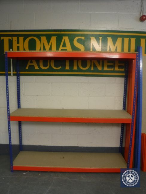 A set of three tier metal shelving, height 184 cm, depth 46 cm, length 183 cm