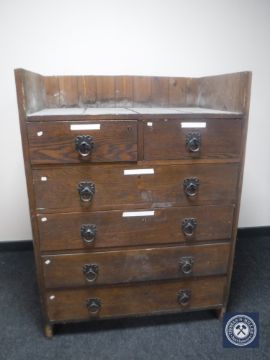 An Edwardian oak six drawer chest with metal drop handles