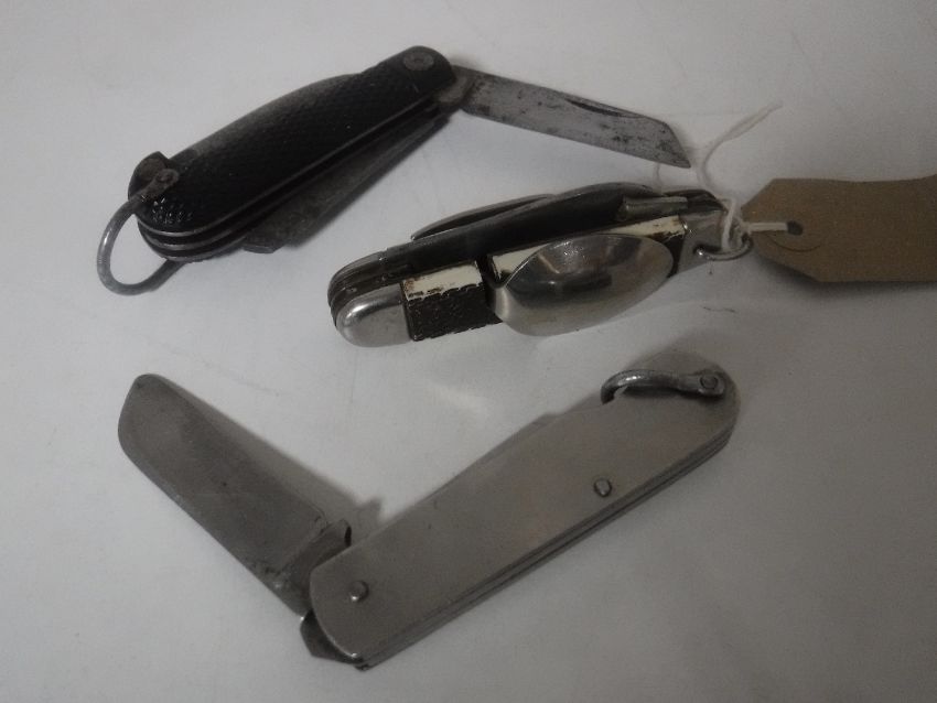 Three army knives including a 1945 Wade & Butler, 1950's Slater and a Stag knife