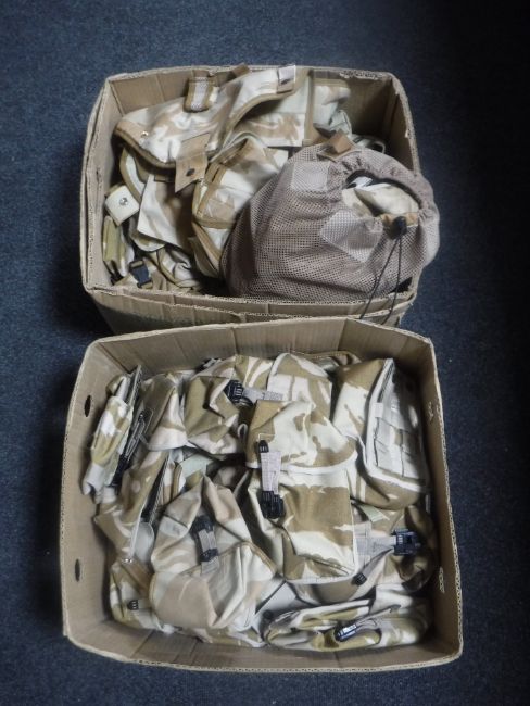 Two boxes containing army issue pouches
