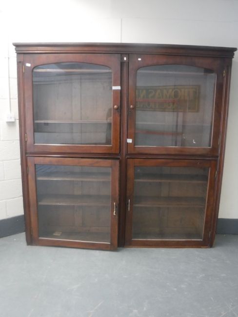 A Victorian mahogany glazed bookcase with four glazed panel doors, width 214 cm x 219 cm