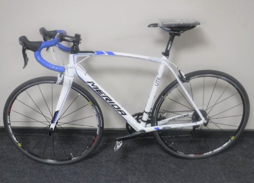 A Merida road bike, model Scultura 904, frame size M/L, front and rear mech Shimano 105, brake levers and shifters Shimano 105, Merida pro calliper brakes, Mavic Aksium wheels, Shimano 105 20 speed crack set, carbon fibre front forks