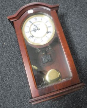A mahogany cased Highlands wall clock with key and pendulum