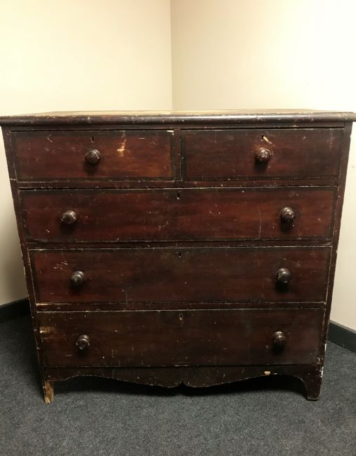 A Victorian painted pine chest of two short and three long, graduated drawers.
