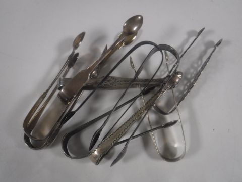 Eight pairs of Georgian silver sugar tongs, together with two Victorian examples (10)