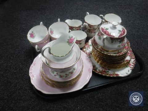 A tray of twenty one pieces of Royal Stafford Olde English Garden tea china and eighteen pieces of New Chelsea rose pattern tea china
