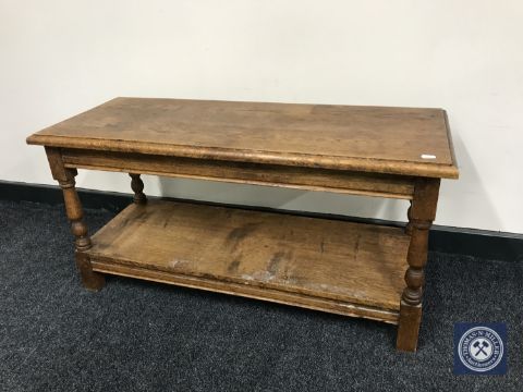 An oak pegged two tier coffee table