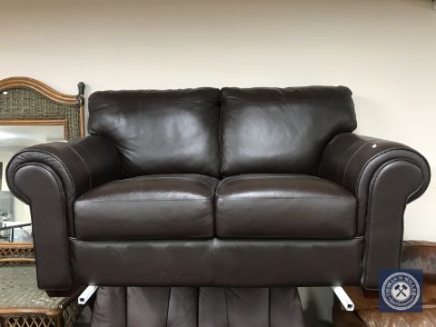 A brown leather two seater settee