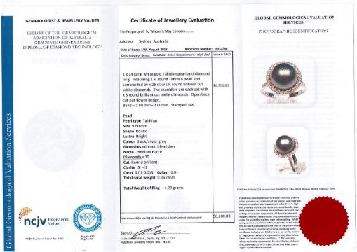 A 14ct yellow gold pearl and diamond ring, the black/grey Tahitian pearl within a border of thirty-five brilliant-cut diamonds, upon diamond-set shoulders, the total diamond weight 0.36 carat, of G/H colour and SI1-I1 clarity, with certification, to a plain polished shank, size K1/2