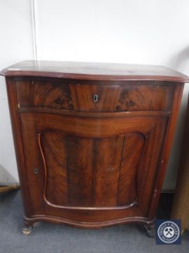 An antique continental mahogany cabinet fitted a drawer