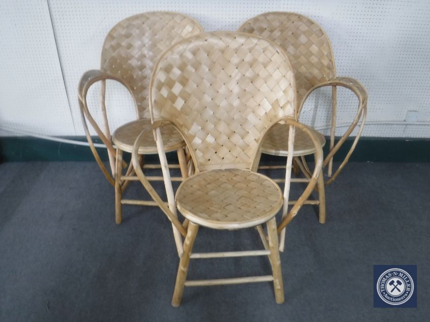 Three bamboo armchairs