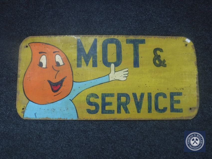 A hand painted MOT and Service sign on board