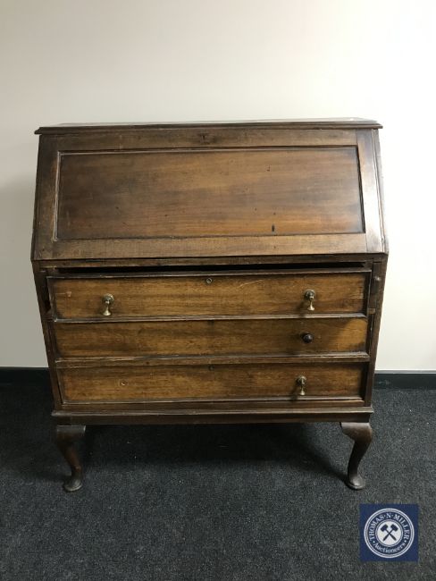 A Victorian mahogany writing bureau on claw and ball feet