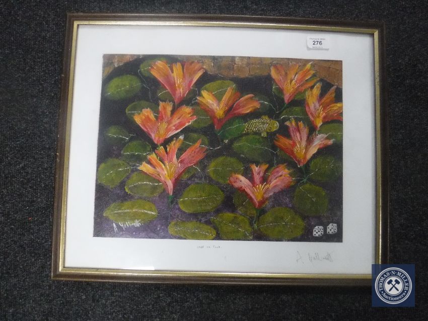 A framed A. Galbraith oil, Carp in Pond