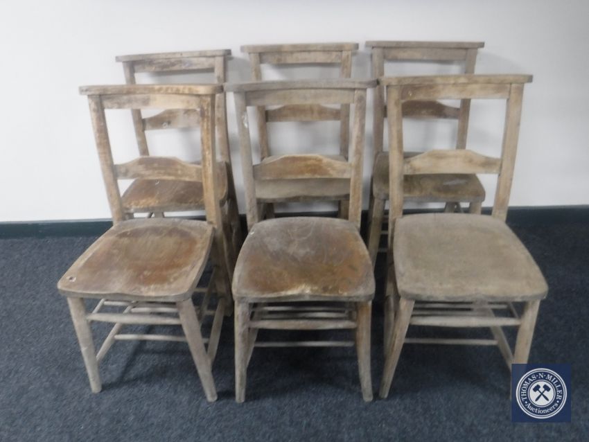 A set of six antique chapel chairs
