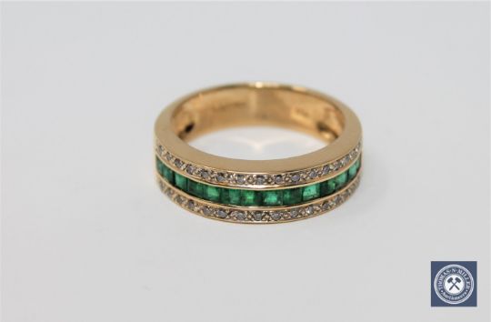An 18ct gold emerald and diamond half-eternity ring, size N