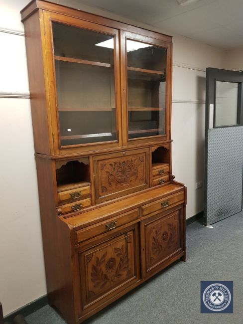 A late Victorian walnut secretaire cabinet, width 127cm