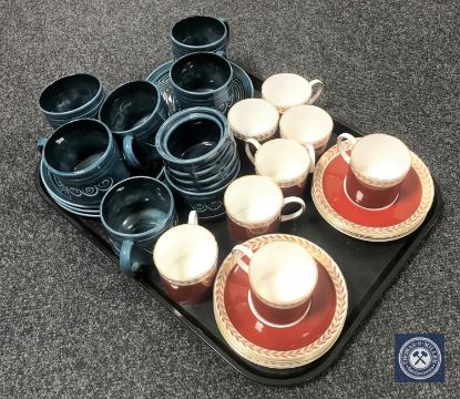 A tray of eight Susie Cooper bone china coffee cans and matching saucers, Sylvac tea china