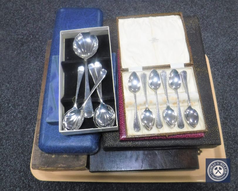 Eight boxes of silver plated cutlery, serving sets etc. (8)