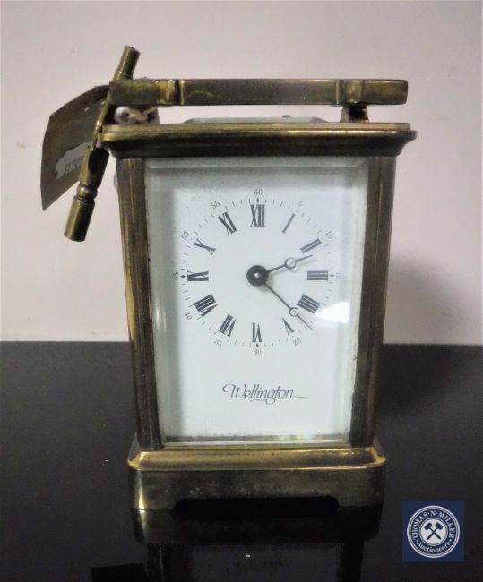 A brass cased Wellington carriage clock with key