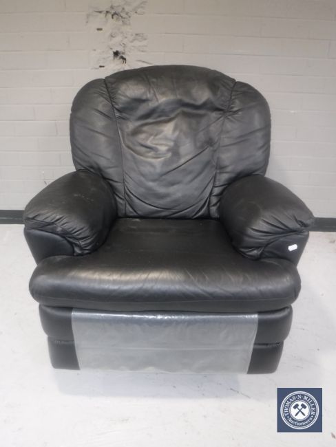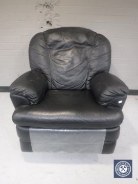 A black leather manual reclining armchair