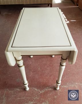 A cream and gilt drop leaf table and a side table