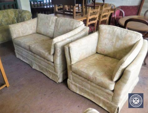 A mid 20th century continental two seater settee and matching armchair