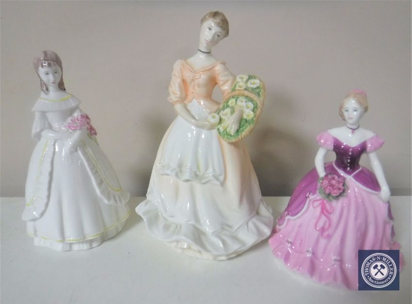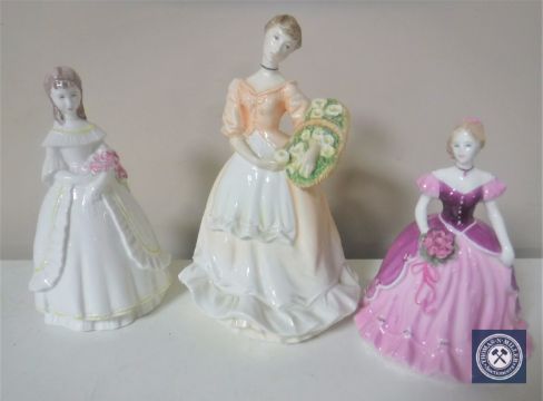 A Coalport figure, Debutante Marianne, together with two Royal Worcester figures