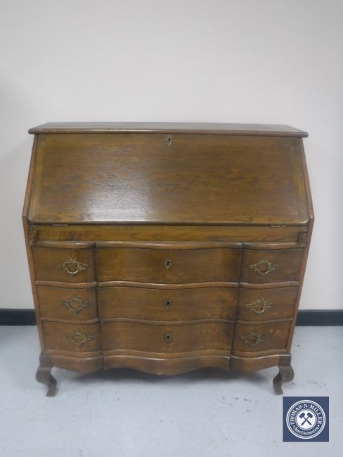 An oak serpentine front bureau