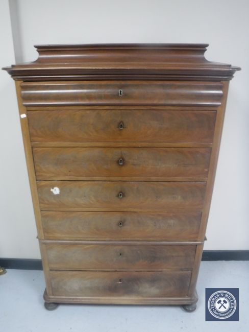 A 19th century continental mahogany seven drawer chest