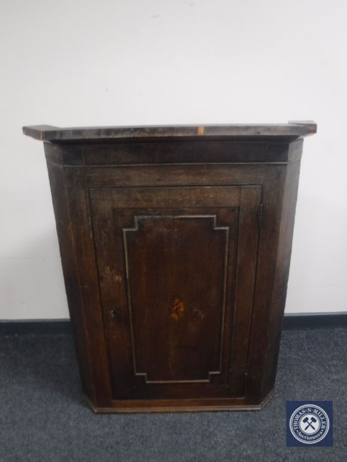 A Georgian oak hanging corner cupboard