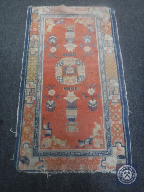 An antique Chinese hearth rug on salmon ground, 127cm by 73cm