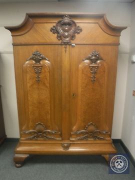 A 19th century oak and burr walnut double door cabinet, width 142 cm