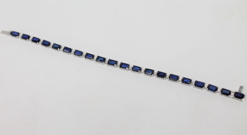 A 14ct white gold sapphire and diamond tennis bracelet, featuring 20 sapphires 12.72ct and 21 brilliant cut diamonds 0.05ct. With certification.