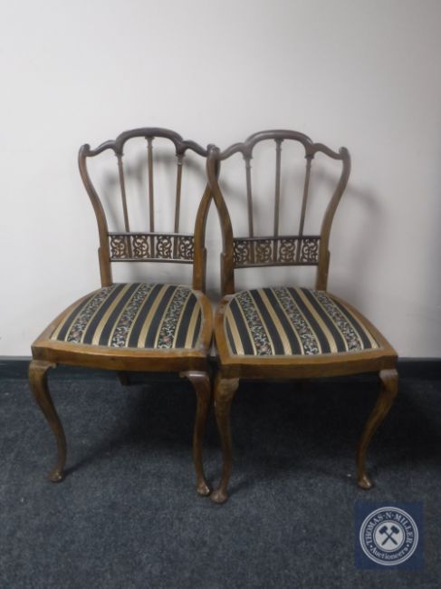 A pair of early 20th century mahogany bedroom chairs on cabriole legs