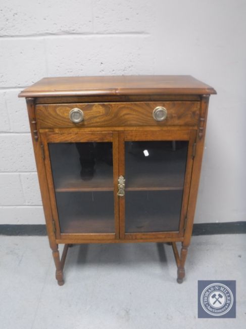 An Edwardian oak double door cabinet fitted a drawer