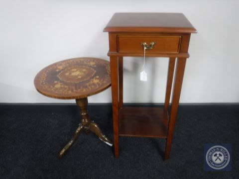 A yew wood telephone stand fitted a drawer together with an Italian style wine table