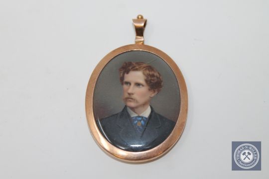 A Victorian miniature in gold frame depicting a gentleman, the reverse with lock of hair.