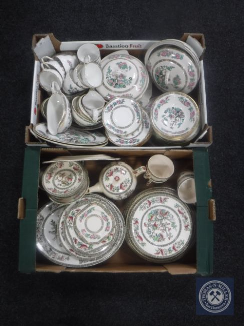 Two boxes of Indian Tree pattern dinner ware by various makers