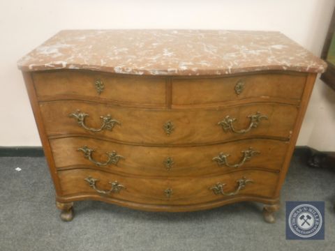 A 19th century marble topped serpentine fronted five drawer chest, width 117 cm