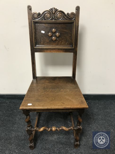 A Victorian carved oak hall chair