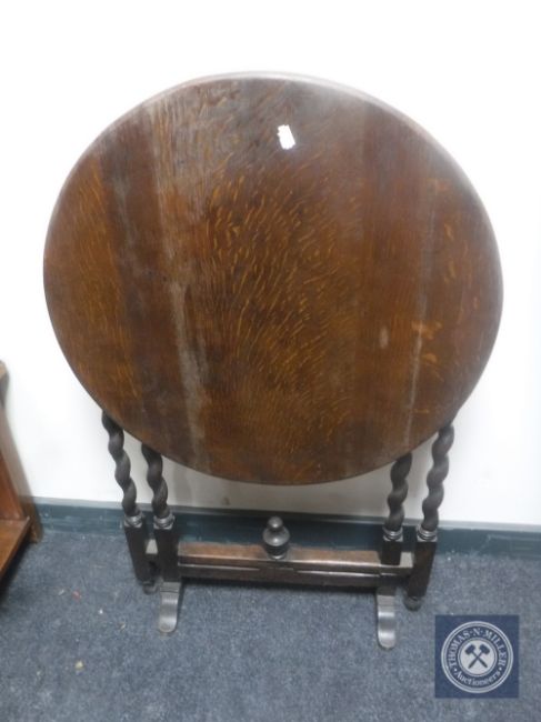 An Edwardian oak barley twist folding table