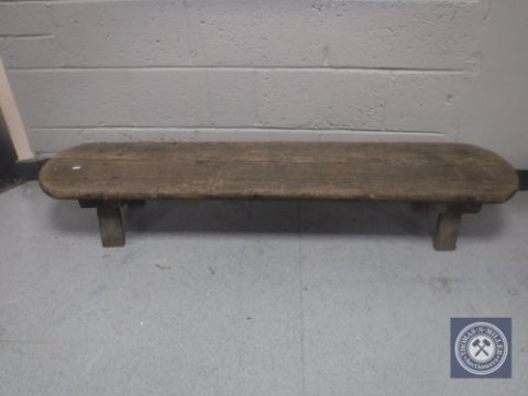 An antique rustic pine low bench