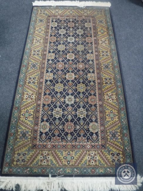 A Caucasian design rug on indigo ground, 213cm by 102cm