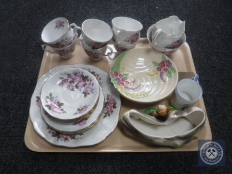 A tray of twenty-one piece Queen Anne bone china tea service and Hornsea vase, Wade shallow dish, Aynsley mug