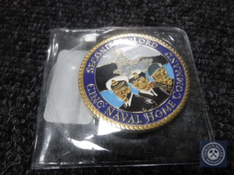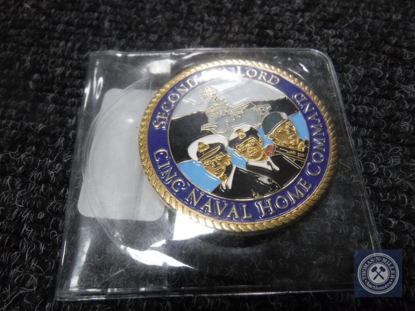 A presentation medallion - Presented by Vice Admiral Montgomery, Second Sea Lord Cinc Naval Home Command.